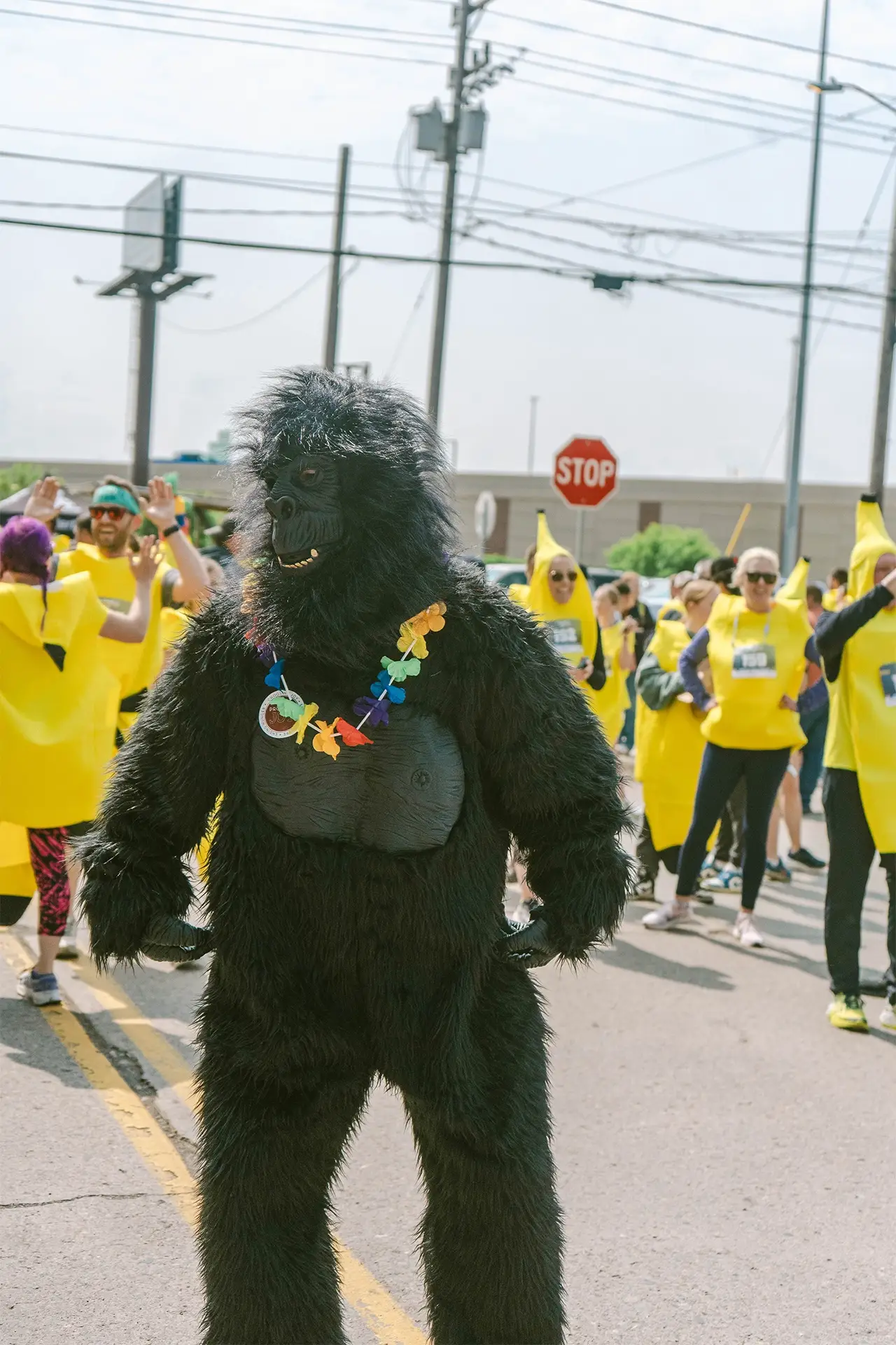 After two minutes we release our “Gorilla” this person is dressed in their very own gorilla costume and has one objective. Chase and beat the bananas. The Gorilla is a hidden racer chosen by our leadership team.